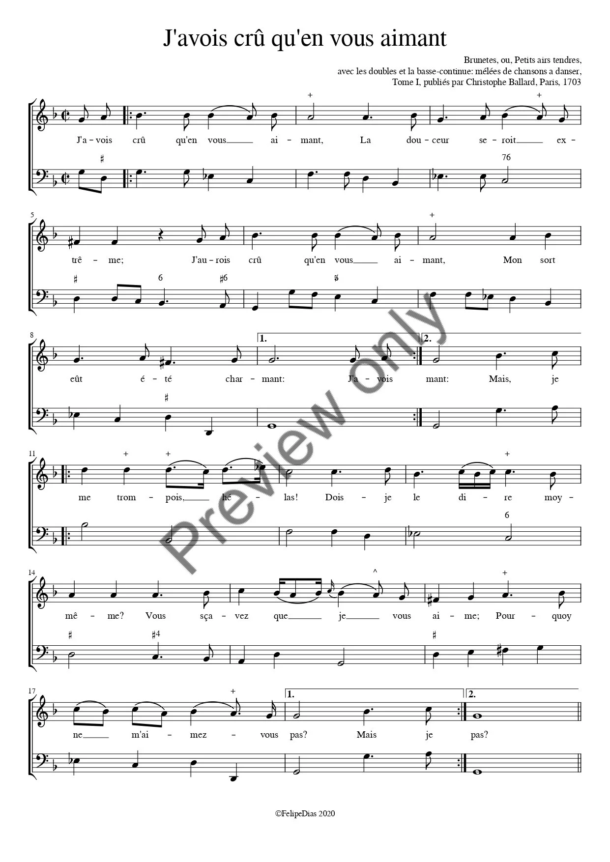 French Categories: All Italian Lamenti Cantatas Diminutions Baroque arias French Airs sérieux et à boire Airs de cour Baroque arias English Embellished songs Mad songs Cantatas Baroque arias Spanish Tonos humanos Cantatas Baroque arias Latin American German Sacred Women Composers All / French Airs sérieux et à boire | Airs de cour | Baroque arias | Quick View Claudin de Sermisy: Languir me fais (with divisions by Adrian Petit Coclico) $7.00 Add To Cart Added! Quick View Claudin de Sermisy: Allez soupirs $6.00 Add To Cart Added! Quick View François Bouvard: Je vous aime $6.00 Add To Cart Added! Quick View Jean Baptiste Drouard de Bousset: Pourquoi mon doux Sauveur $7.00 Add To Cart Added! Quick View Michel Lambert: Je goûtais cent mille douceurs $7.00 Add To Cart Added! Quick View Orlando di Lasso: Susanne un jour $7.00 Add To Cart Added! Quick View Antoine Boësset: Frescos ayres del prado (5 voices) $8.00 Add To Cart Added! Quick View Antoine Boësset: Una musica le den $7.00 Add To Cart Added! Quick View Etienne Moulinié: Si negra tengo la mano $7.00 Add To Cart Added! Quick View Etienne Moulinié: Ojos si quereis vivir $7.00 Add To Cart Added! Quick View Etienne Moulinié: Clori sobr'el lido del mar $7.00 Add To Cart Added! Quick View Etienne Moulinié: Embiame mi madre $7.00 Add To Cart Added! Quick View Fabrice-Marin Caietain: Madre à l'Amor quiérole $6.00 Add To Cart Added! Quick View Fabrice-Marin Caietain: Falsa més la spiga de ruela $6.00 Add To Cart Added! Quick View Antoine Boësset: N'espérez plus mes yeux (with diminutions by Moulinié, Le Bailly and Boësset) $8.00 Add To Cart Added! Quick View Elisabeth von Hessen: O que malheureux $8.00 Add To Cart Added! Quick View Antonia Bembo: Ha, que l'absence est un cruel martire $7.00 Add To Cart Added! Quick View Honoré d'Ambruis: Le doux silence de nos bois $6.00 Add To Cart Added! Quick View Marc-Antoine Charpentier: Sans frayeur dans ce bois $7.00 Add To Cart Added! Quick View Henri du Bailly: Yo soy la locura $7.00 Add To Cart Added! Quick View Jean Baptiste de Bousset: Pourquoy doux Rossignol $7.00 Add To Cart Added! Quick View Michel Lambert: Doux charmes du printemps $7.00 Add To Cart Added! Quick View Michel Forqueray: N'espère plus jeune Lisette $6.00 Add To Cart Added! Quick View Henri Desmarest: Lieux charmants, retraites tranquilles $8.00 Add To Cart Added! Quick View Marc-Antoine Charpentier: Quoi rien ne peut vous arrêter $6.00 Add To Cart Added! Quick View François Bouvard: Chantez charmants oyseaux $6.00 Add To Cart Added! Quick View Marc-Antoine Charpentier: Rentrez trop indiscrets soupirs $6.00 Add To Cart Added! Quick View Marc-Antoine Charpentier: Ah qu'ils sont courts les beaux jours $6.00 Add To Cart Added! Quick View Michel Forqueray: Le papillon et la rose $6.00 Add To Cart Added! Quick View Antoine Dard: Rends-moi ton coeur $6.00 Add To Cart Added! Quick View Antoine Dard: Rends-moi ton coeur (High voice) $6.00 Add To Cart Added! Quick View Michel Lambert: Charmante nuit hâtez votre retour $7.00 Add To Cart Added! Quick View Anonymous: Passava Amor su arco desarmado $6.00 Add To Cart Added! Quick View Joseph Chabanceau de La Barre: Quand on vous dit que je vous ayme $6.00 Add To Cart Added! Quick View Michel Lambert: Superbes ennemis du repos de mon ame $6.00 Add To Cart Added! Quick View Joseph Chabanceau de La Barre: J'avois juré de n'aymer plus $7.00 Add To Cart Added! Quick View Guillaume de Machaut: Foy porter $6.00 Add To Cart Added! Quick View Guillaume de Machaut: Douce dame jolie $6.00 Add To Cart Added! Quick View Michel Lambert: Vous éprouver toujours sevère $6.00 Add To Cart Added! Quick View Marc-Antoine Charpentier: Retirons-nous fuyons $6.00 Add To Cart Added! Quick View Michel Lambert: Pour jouir d'un bonheur $6.00 Add To Cart Added! Quick View Henri Desmarest: Désirs transports $7.00 Add To Cart Added! Quick View Jean-Baptiste Drouard de Bousset: De mes soupirs $6.00 Add To Cart Added! Quick View Marc-Antoine Charpentier: En vain rivaux assidus $6.00 Add To Cart Added! Quick View Jean-Baptiste de Bousset: Charmante nuit, vos voiles sombres $6.00 Add To Cart Added! Quick View Antoine Boësset: N'espérez plus mes yeux (SATB) $6.00 Add To Cart Added! Quick View Luis de Briceño: Ay amor loco (Tono françes) $6.00 Add To Cart Added! Quick View Gabriel Bataille: Si sufro por ti morena (Air espagnol) $6.00 Add To Cart Added! Quick View Etienne Moulinié: Repicavan las campanillas $6.00 Add To Cart Added! Quick View Etienne Moulinié: Orilla del claro Tajo $6.00 Add To Cart Added! Quick View Antoine Boësset: Dove ne vai, crudele? $6.00 Add To Cart Added! Quick View Pierre Guédron: Aux plaisirs aux délices bergères $7.00 Add To Cart Added! Quick View Luis de Briceño: Si quereis que os enrrame la puerta $6.00 Add To Cart Added! Quick View Luis de Briceño: Serrana si vuestros ojos $7.00 Add To Cart Added! Quick View Pierre Guédron: Aux plaisirs, aux délices bergères (5 voices) $7.00 Add To Cart Added! Quick View Michel Lambert: Que faites-vous Silvie $6.00 Add To Cart Added! Quick View Antoine Boësset: À la fin cette bergère $7.00 Add To Cart Added! Quick View Jean-Baptiste Lully: Scocca pur tutti tuoi strali $9.00 Add To Cart Added! Quick View Joseph Chabanceau de La Barre: Quand une ame est bien atteinte $8.00 Add To Cart Added! Quick View Anonymous: Vuestros ojos tienen d'Amor $6.00 Add To Cart Added! Quick View François Bouvard: Rossignols amoureux (Printemps) $8.00 Add To Cart Added! Quick View Marc-Antoine Charpentier: Ruisseau qui nourrit dans ce bois $6.00 Add To Cart Added! Quick View Joseph Chabanceau de La Barre: Si c'est un bien que l'espérance $8.00 Add To Cart Added! Quick View Antoine Boësset: Je voudrois bien ô Cloris $6.00 Add To Cart Added! Quick View Michel Lambert: Rochers vous êtes sourds $8.00 Add To Cart Added! Quick View Marc-Antoine Charpentier: Celle qui fait tout mon tourment $6.00 Add To Cart Added! Quick View Marc-Antoine Charpentier